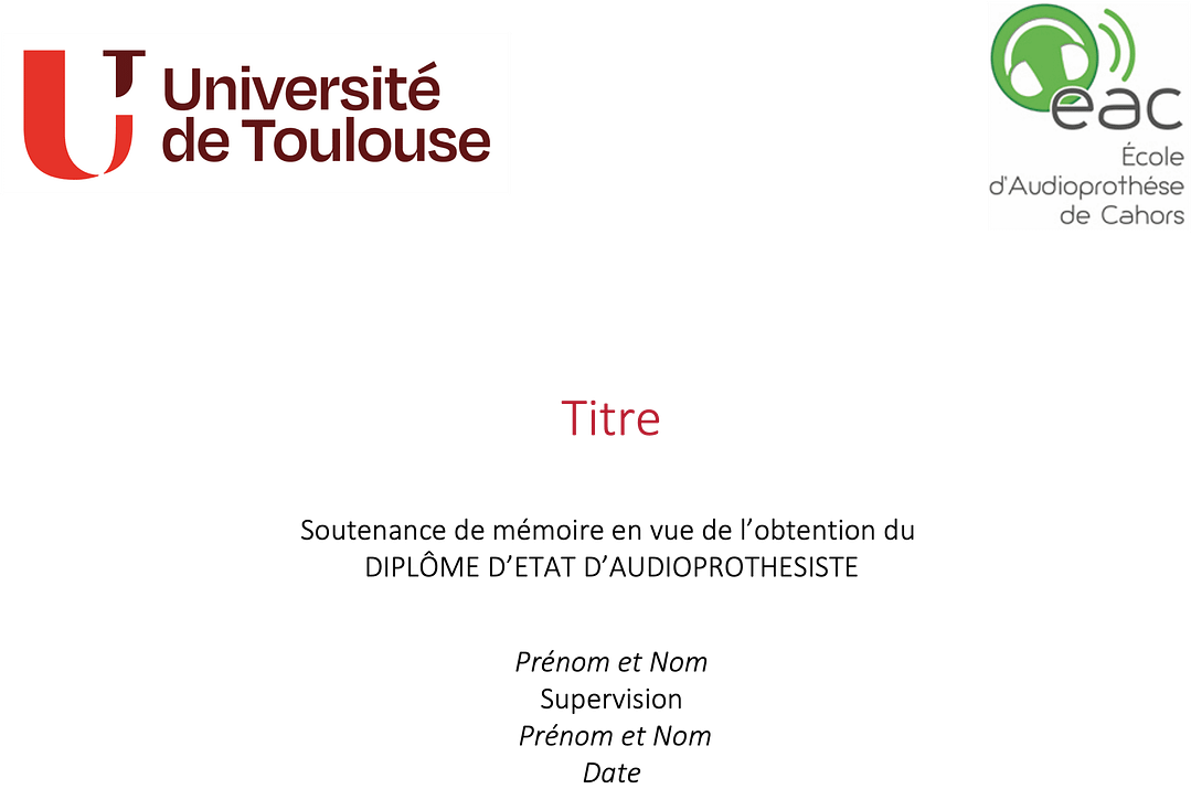 La slide (ou diapo) titre doit être la plus claire et sobre possible sans toutefois la négligée. Elle va donner une bonne image de toi et de ton travail. Le titre de ta diapo est exactement le même que celui de ton manuscrit.